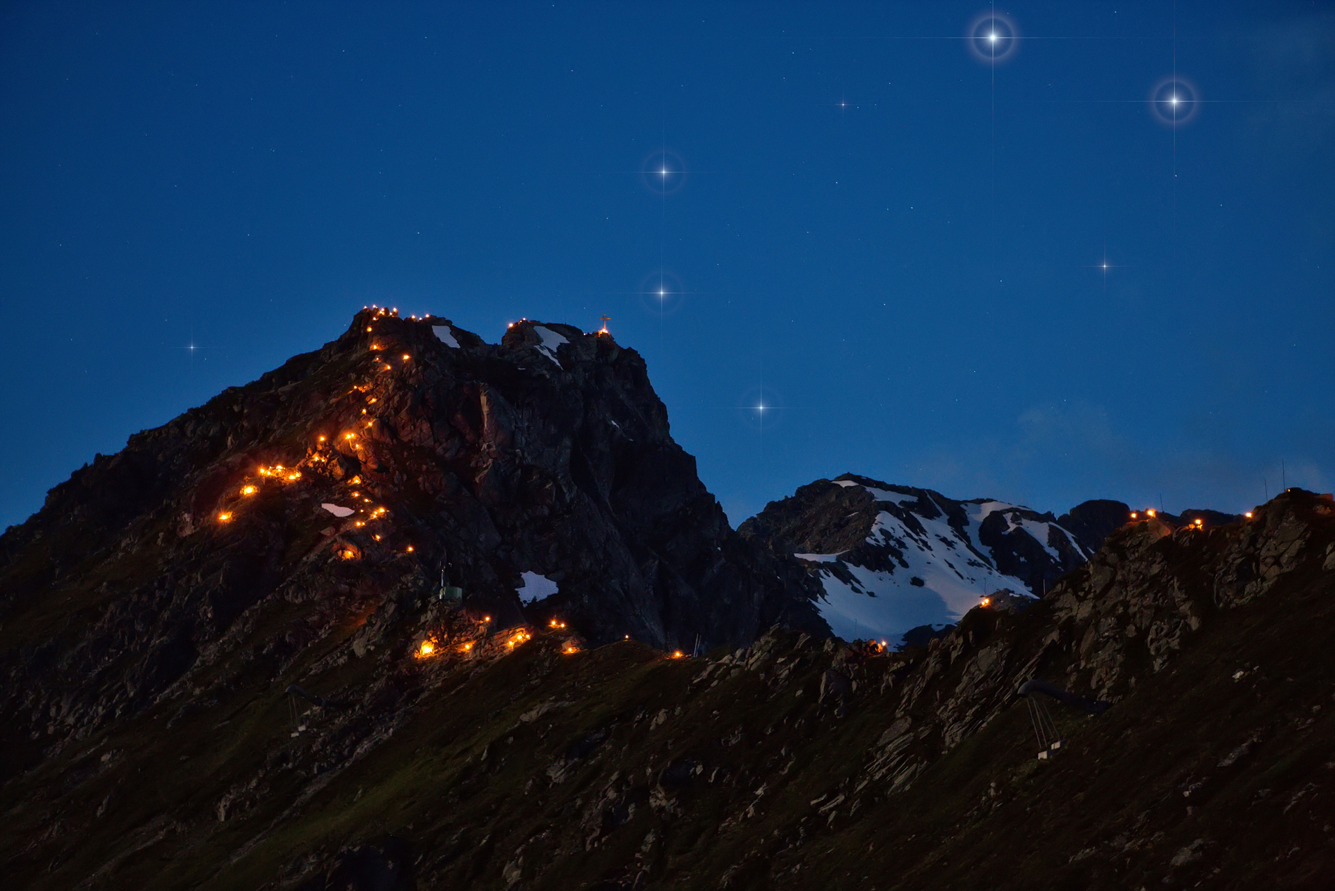 21:45 Uhr - Anzünden der Bergfeuer auf den Gipfeln rund um Gargellen