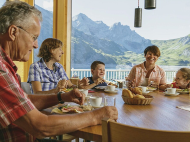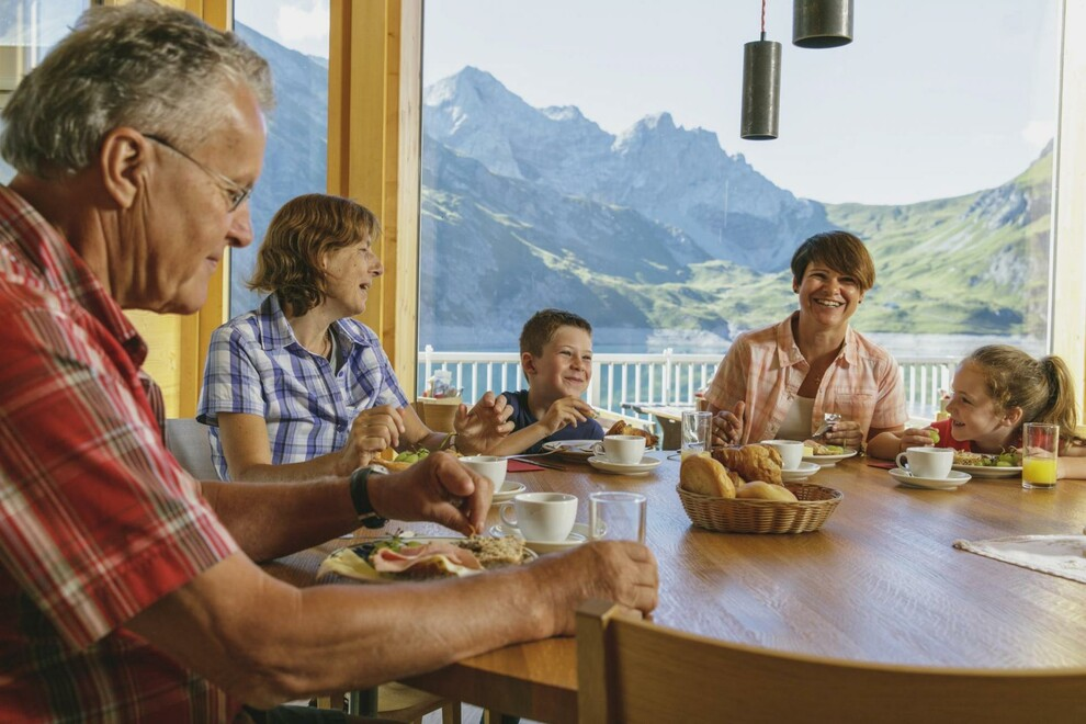 Genieße auf der sonnigen Seeterrasse am türkisblauen "Juwel" des Rätikon die umliegende Bergwelt