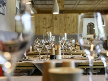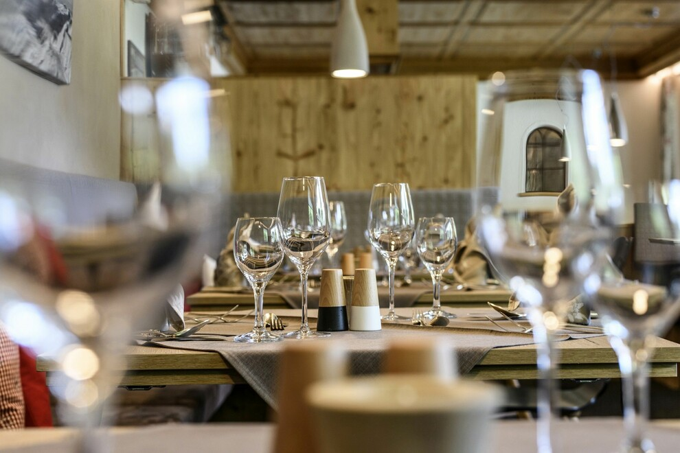 Im Rahmen der Halbpension servieren wir täglich ein frisch zubereitetes 4-Gänge-Menü. Eines der beiden zur Wahl stehenden Hauptgerichten ist stets vegetarisch. Wir kochen alles selbst und verwenden überwiegend regionale Zutaten – daher bitten wir um Anmeldung bis 10:00 Uhr.