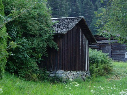 Neben der Pension Lucas stehen alte Holzhütten, die bis in die Mitte des vergangenen Jahrhunderts als Unterstände für Ziegen genutzt wurden Die Ziegenherden wurden unmittelbar nach der Schneeschmelze über die Maisäß- und Alpflächen getrieben. Jeden Abend brachten die Hirten, sogenannte Geißler, die Tiere zurück in die Geißbargen.