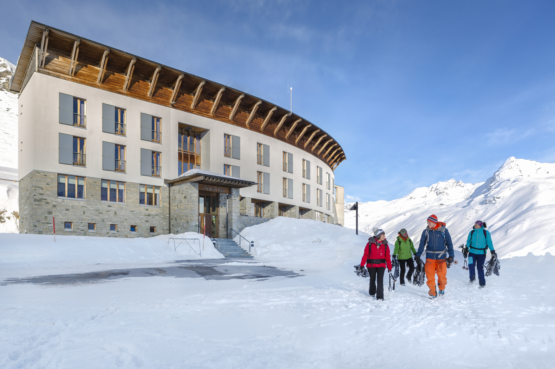 Die Schneeschuhtour startet nach dem Vermuntsee in der 3. Kurve. Sie führt Dich zunächst der geräumten Fahrstraße entlang und zweigt dann links ins freie Gelände ab. Dei Route geht oberhalb der Fahrstraße bis zum Silvrettasee entlang. Einkehrmöglichkeiten Silvrettahaus, Berggasthof Piz Buin oder das Madlenerhaus.