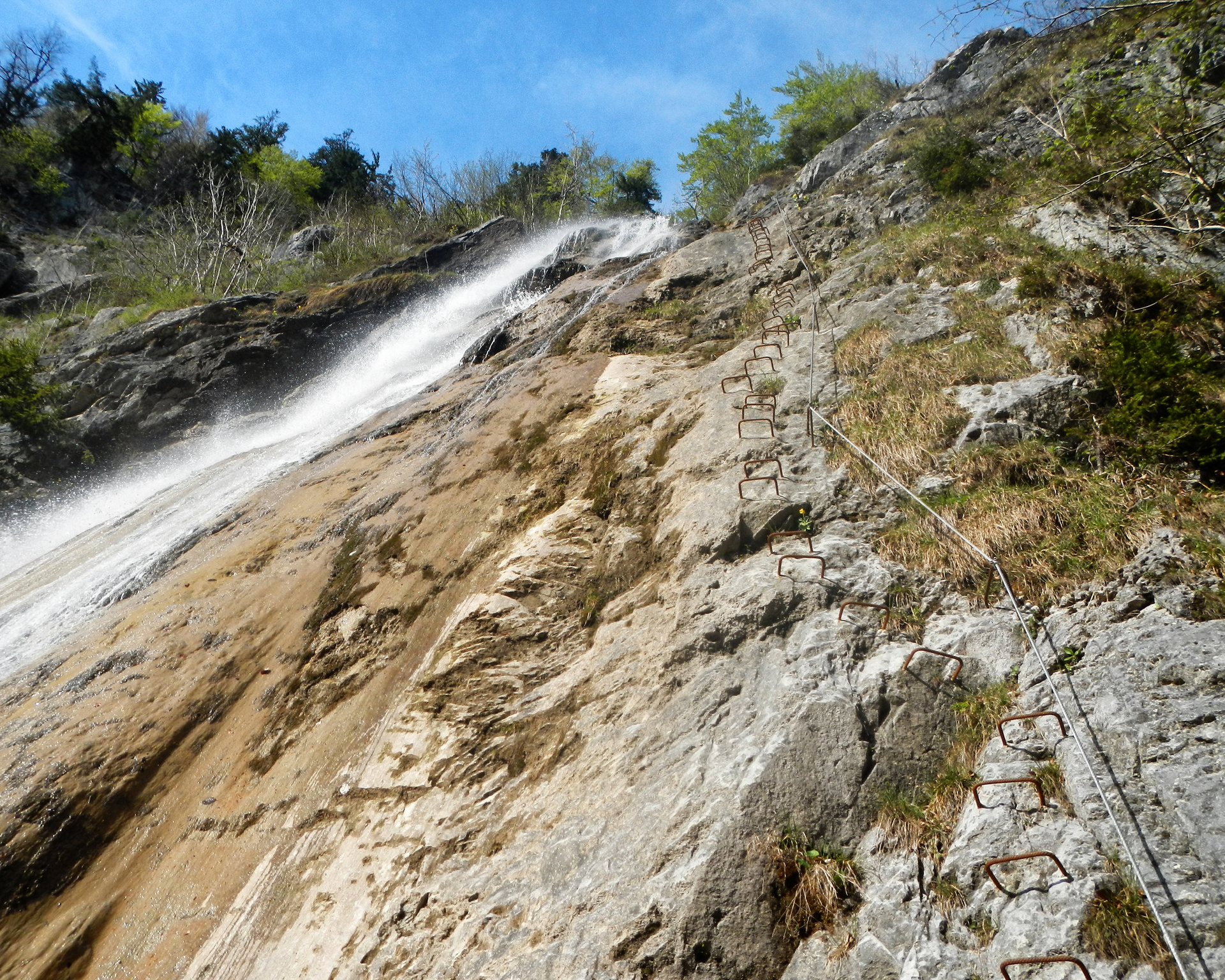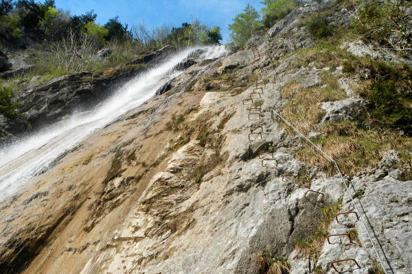 Etwas oberhalb vom Ortszentrum St. Anton im Montafon befindet sich der Wasserfall Klettersteig. Dieser Klettersteig gilt zwar als leicht erreichbar, darf aber nicht unterschätzt werden. Es befinden sich leichte Stellen (Schwierigkeitsgrad B/C), als auch zwei senkrechte und ausgesetzte Schlüsselstellen (Schwierigkeitsgrad C/D) im Klettersteig. Ein Notausstieg ist nicht möglich. Die Höhepunkte sind zwei Hängebrücken über tosenden Wasserfällen, fantastischer Ausblick sowie eine senkrechte Felswand. Entsprechende Armkraft, Schwindelfreiheit und Kenntnisse im Klettersteiggehen sind dringend erforderlich!