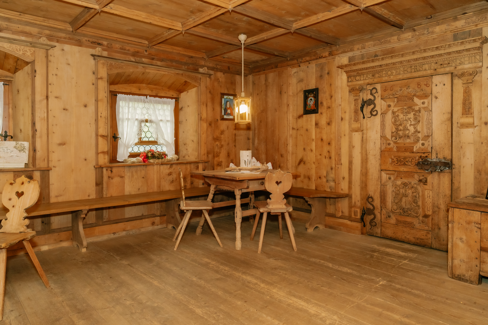 Ein besonderes Zeugnis der Kunstfertigkeit gibt vor allem die mit der Jahreszahl 1681 versehene Türe, welche herausragende Schnitzereien und das Wappen der Tschofens trägt. Das Inventar der Stube wurde museal ergänzt. Die Stollentruhe aus dem 16. Jahrhundert und der Montafonertisch von 1786 sind herausragende Beispiele alpenländischer Volkskunst.