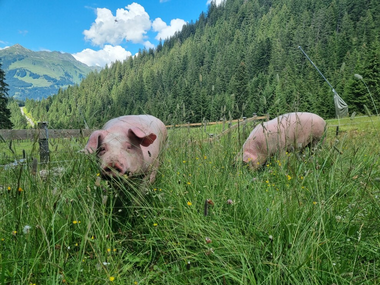 Wir bewirtschaften die Rinderalpe Nova mit viel Herzblut und Hingabe auf 220 Hektar Weidefläche mit Kühen, Rindern, Ziegen und Pferden.