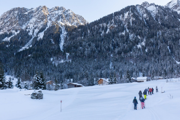Auf breiten Sohlen wanderst Du durch die tiefverschneite Landschaft am Fuße der Silvretta-Bielerhöhe und genießt dabei die Ruhe und Weite der Bergwelt. Unterwegs erfährst Du Spannendes über die Bedeutung der Energiewirtschaft und die Wassernutzung im Tal, die das Leben im Montafon seit Generationen prägen. Höhepunkt dieser leichten Schneeschuhwanderung ist der gespaltene Stein, auch Gufelste genannt – ein faszinierendes Naturdenkmal am Ortsende von Partenen.