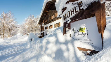 Mühle Heuriger geschlossen Öffnungszeiten18.12.2025 - 12.04.2026Mi - So: 17:00 - 23:00Kirchdorfstr. 5, 6793 Gaschurn
