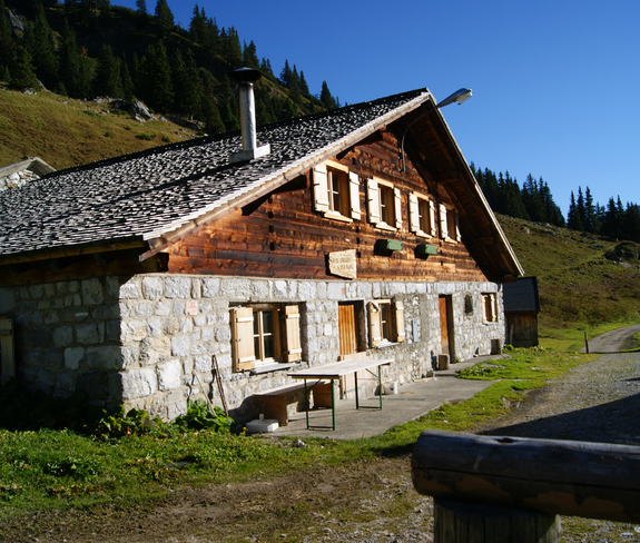 Bei der Sporaalp kannst Du Dich mit einem kühlen Getränk erfrischen – und mit etwas Glück bekommst Du sogar eine Kostprobe vom traditionellen „Sura Kees“, der hier seit Generationen hergestellt wird.