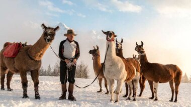 nodate Winter hike Innerberg with the llamas on the llama farm Bartholomäberg Together with Llamero Horst’s llamas, you hike through the snowy landscape and get to know these special animals up close.